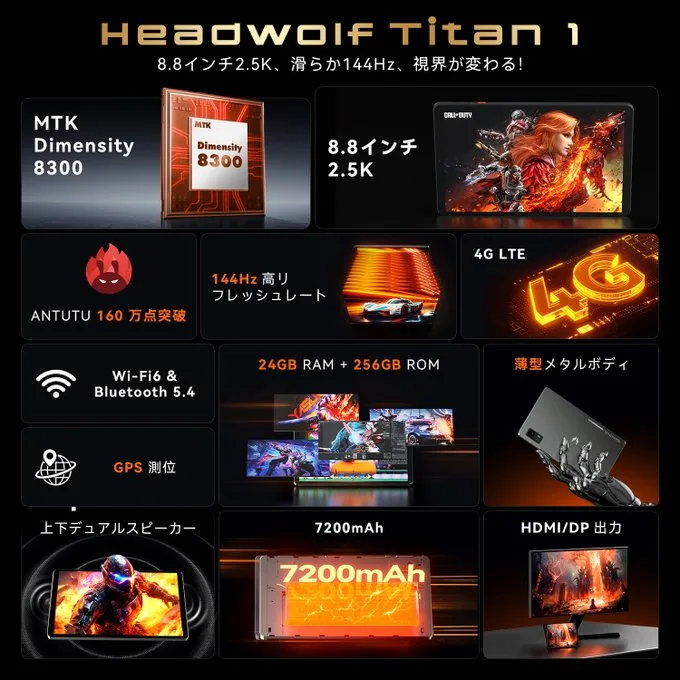 タブレットメーカーのHEADWOLFから、遂にDimensity 8300を搭載した、8.8インチの小型軽量サイズのタブレット「HEADWOLF Titan1」が正式発売されました。