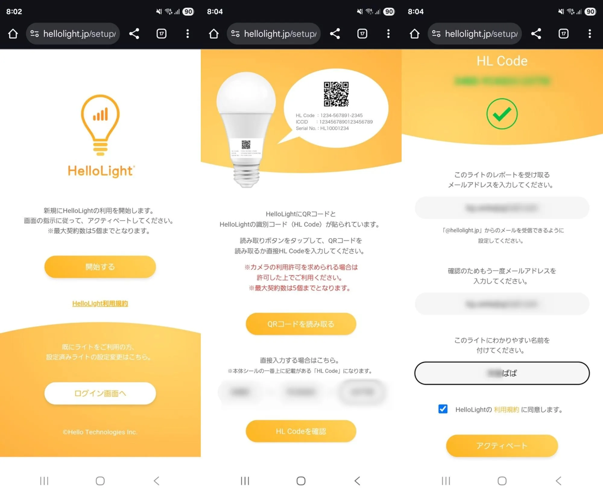 製品としては本当にLED電球。マニュアルに書いてあるQRを読み取って管理ページに行き、LED電球にあるQRコードを読み取ればアクティベートされて使える様になります。メアドとかLINEアカウントとか設定すれば、そちらにレポートが届きます。非常に簡単。