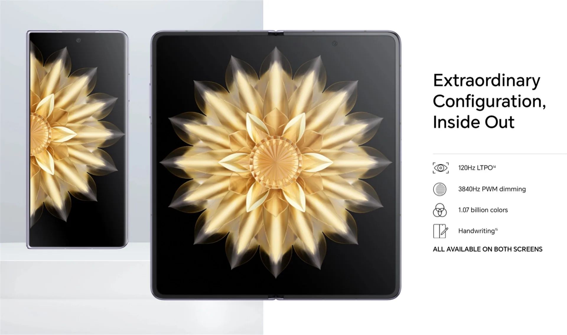 オープン時は7.92インチ、クローズでも6.43インチと大型なLTPO OLEDディスプレイです。