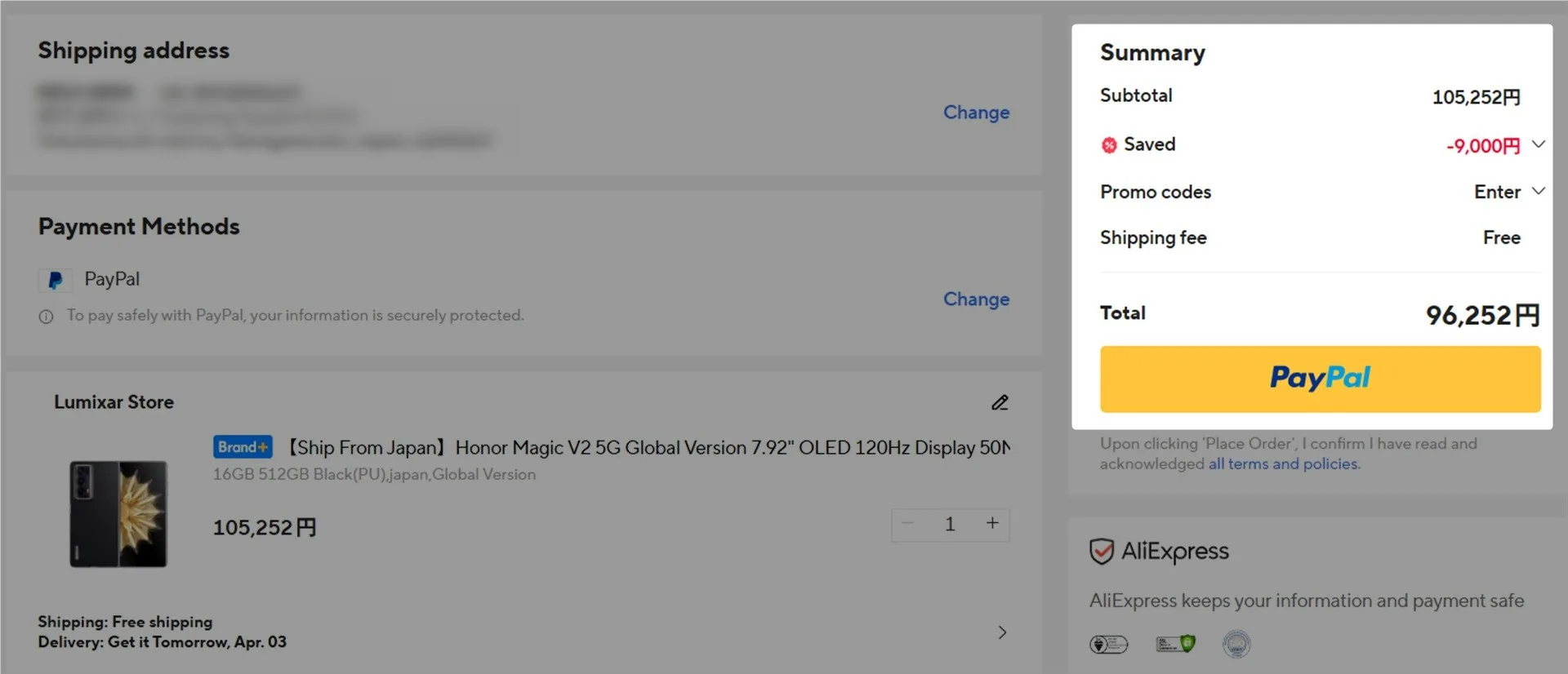 HONORから発売されている、折りたたみスマートフォン「HONOR Magic V2」が、AliExpressのセールで16GB+512GB グローバル版が、クーポン利用で9万円台となっています。