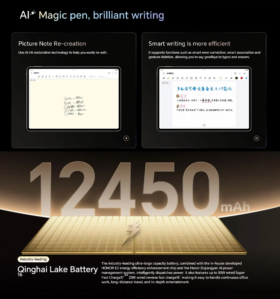 | バッテリー | 12,450mAh (80W急速充電 / 23Wリバース充電対応) |