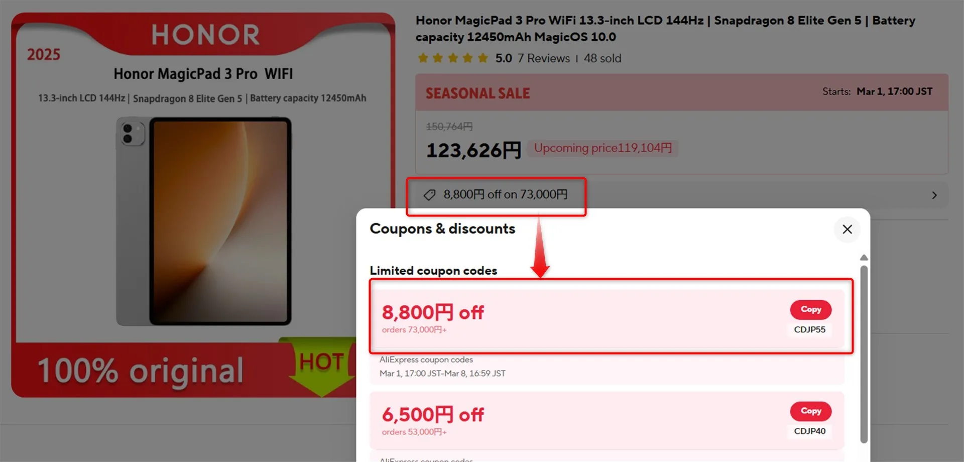 HONOR MagicPad 3 Proは、AliExpressで12GB+256GB版が123,626円でセール中。