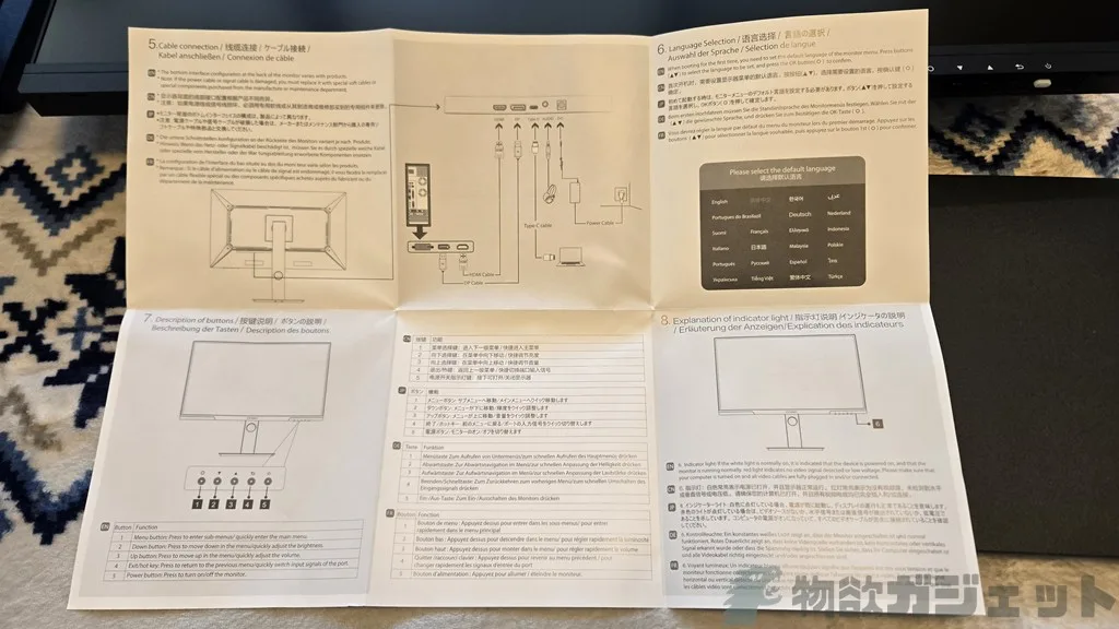 同梱は、ディスプレイ本体、スタンド、ACアダプタ、マニュアル、HDMIケーブルです。