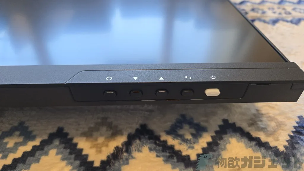 操作系はディスプレイ下部のボタンで行う。ジョイスティック的な操作系があるディスプレイもある中、ボタンというのはちょっと面倒です。しかし最初は画像調整などで触るものの、その後はあまりOSDメニューから操作もしないので、頻度としては少ないでしょう。