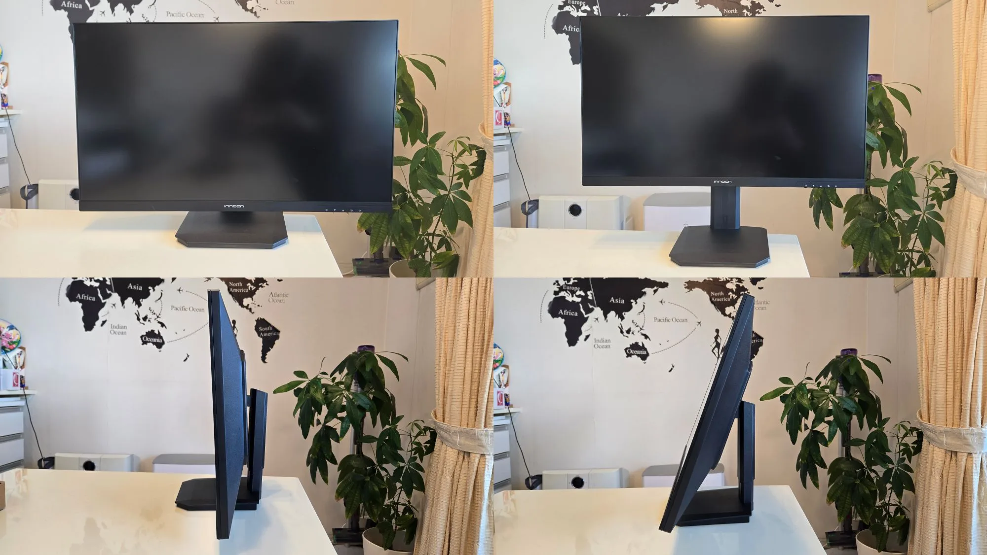 INNOCN 27D1Uは高さ調整とチルト角調整が可能です。比較的低価格なモニターですが、座る位置とか角度によっては調整したいケースも多々あるので、調整ができるのはとても便利。