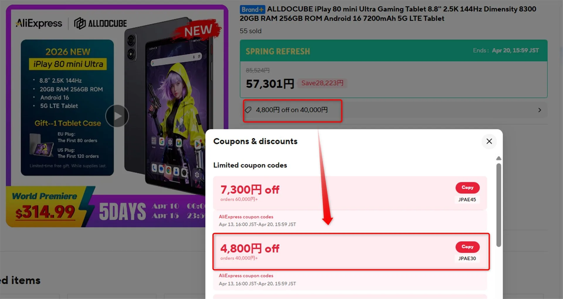 iPlay 80 mini Ultraは、355ドル(約5.7万円)でAliExpressでセール中。