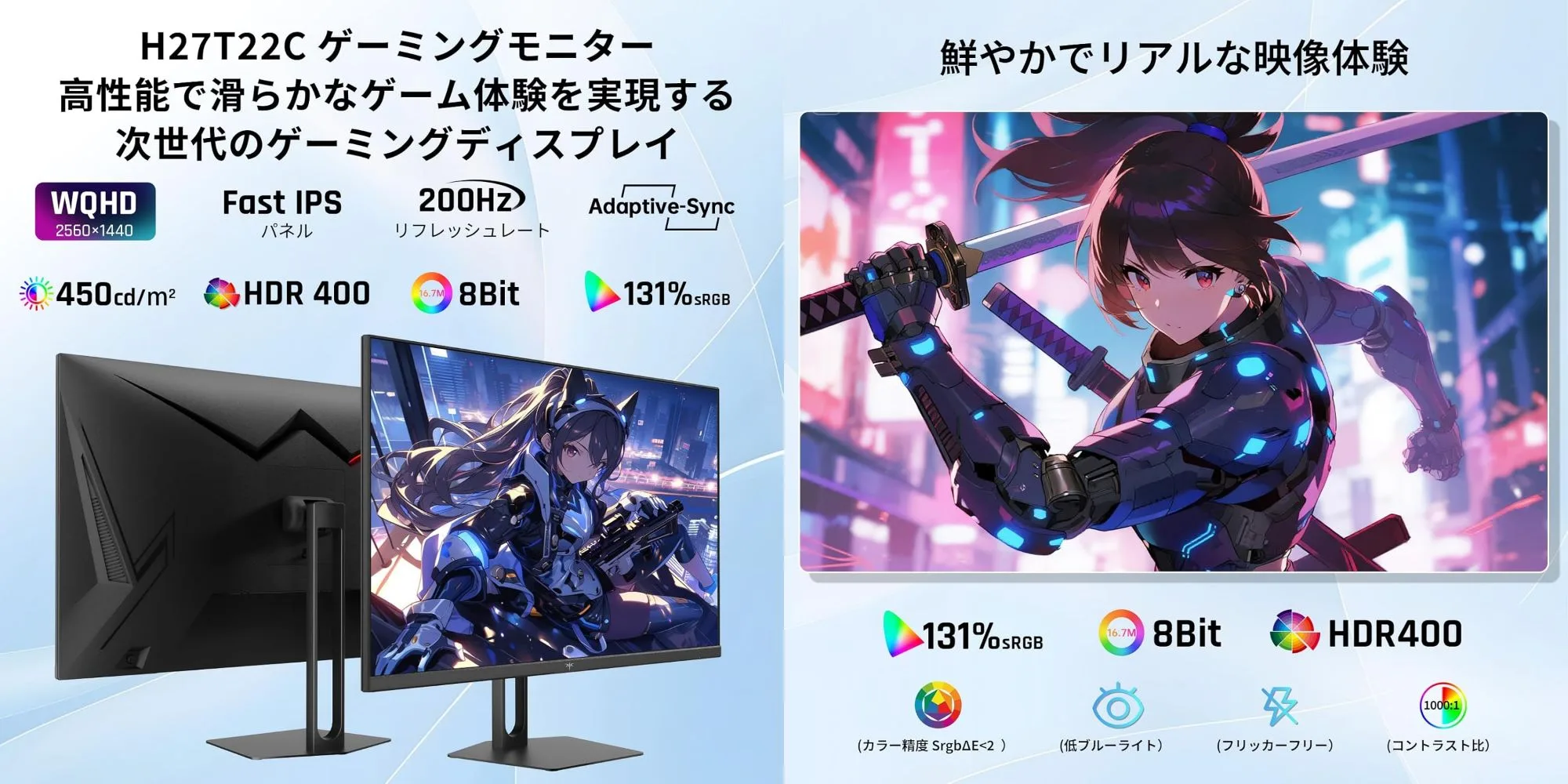 H27T22C-3は、KTC(KEY TO COMBAT)製の27インチのWQHD (2560×1440) Fast IPSパネルを採用した高性能ゲーミングモニターです。