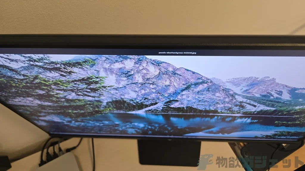 WQHD解像度で、発色はとてもよく見た目でも普通に綺麗で違和感なし。