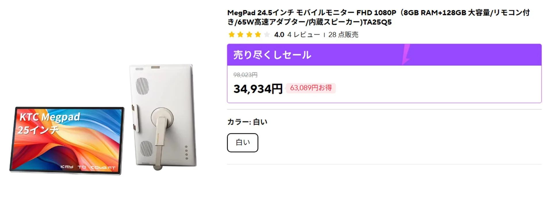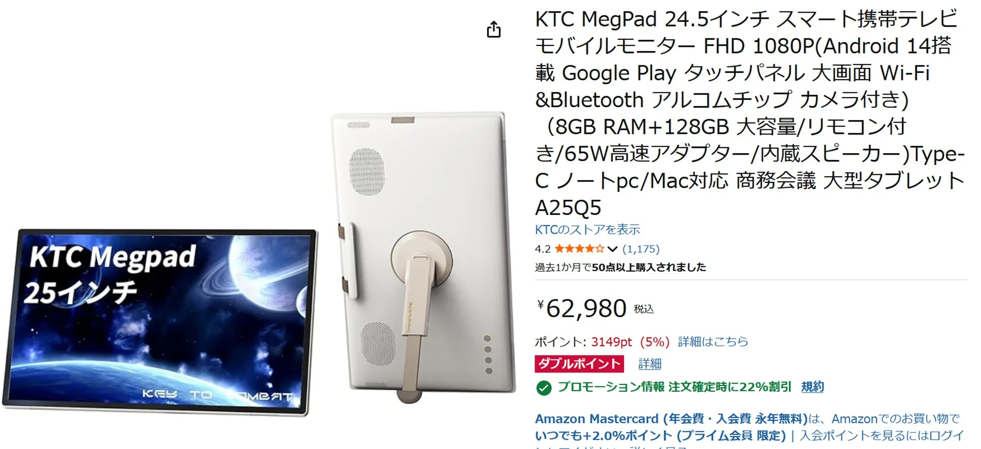 KTC TA25Q5(MegPad A25Q5)は、タブレットの機動性と24.5インチという大型モニターの視認性を融合させた、ポータブルスマートモニターです。