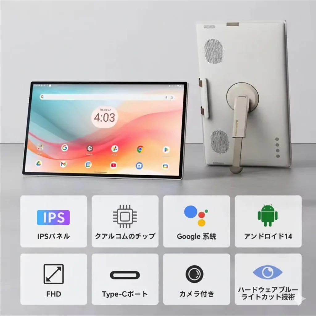 デカいタブレットとして使え、Netflix、YouTube等の動画視聴機としてや、USB Type-C端子からPCと接続できてマルチディスプレイができたり、スタンドは回転と伸縮も可能な為、縦画面ディスプレイとしても利用可能です。