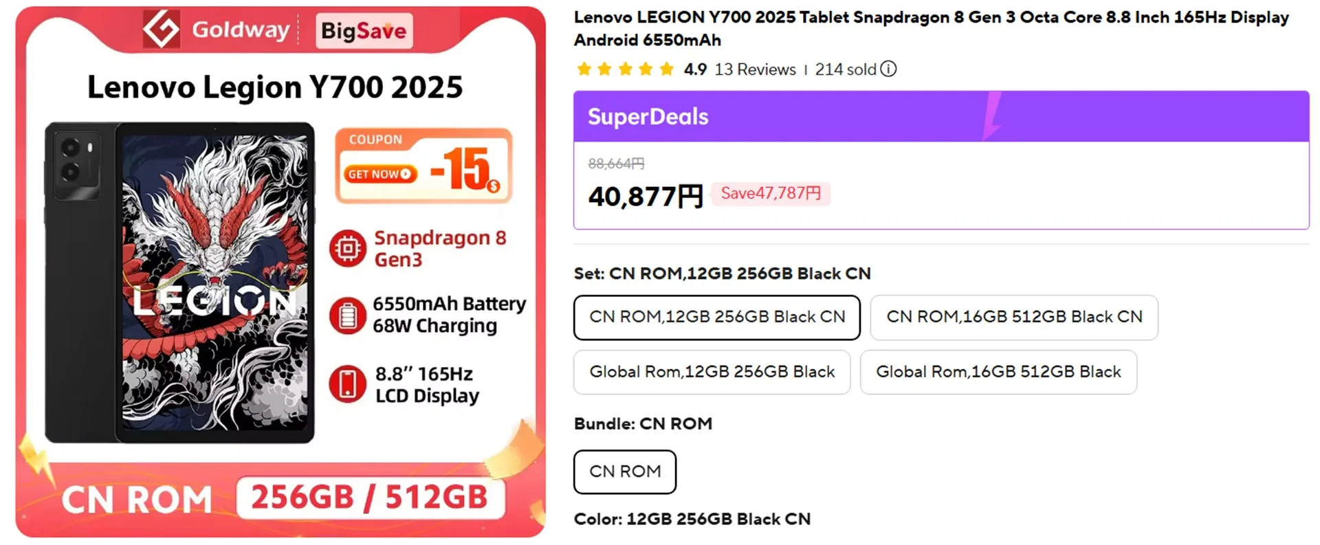LEGION Y700 2025は、Snapdragon8 Gen3搭載でAnTuTu 200万点超で、262ドルで約4万円。