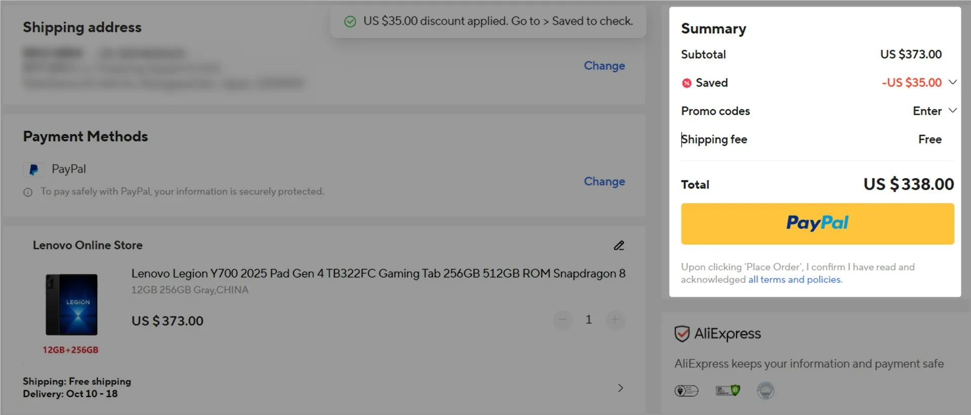 Lenovo LEGION Y700 Gen4 12GB+256GB版は、373ドル(約5万5000円)でAliExpressでセール中。
