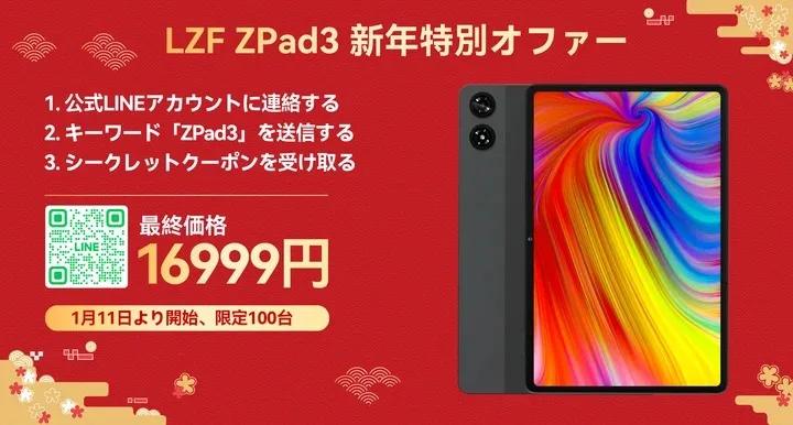 ZPadシリーズを発売しているLZFが、 SIMフリー11インチAndroid15タブレット「LZF ZPad3」を16,999円で買える限定100名限定のシークレットセールをスタートさせました。