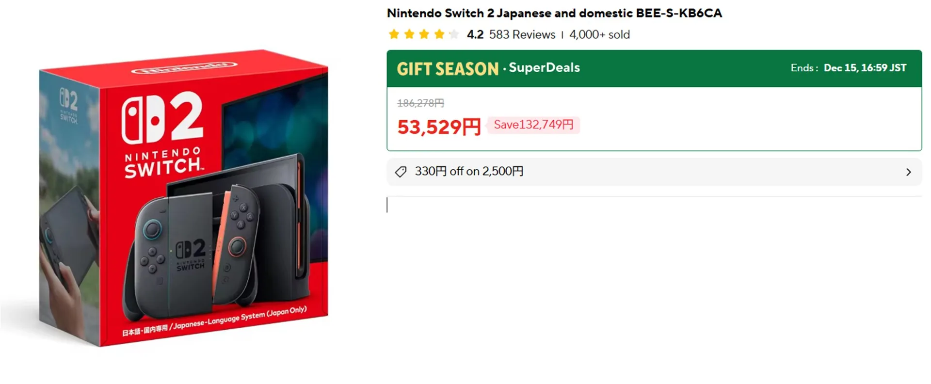 AliExpressで、日本版任天堂SWITCH2がほぼ定価に近い価格で販売されています。