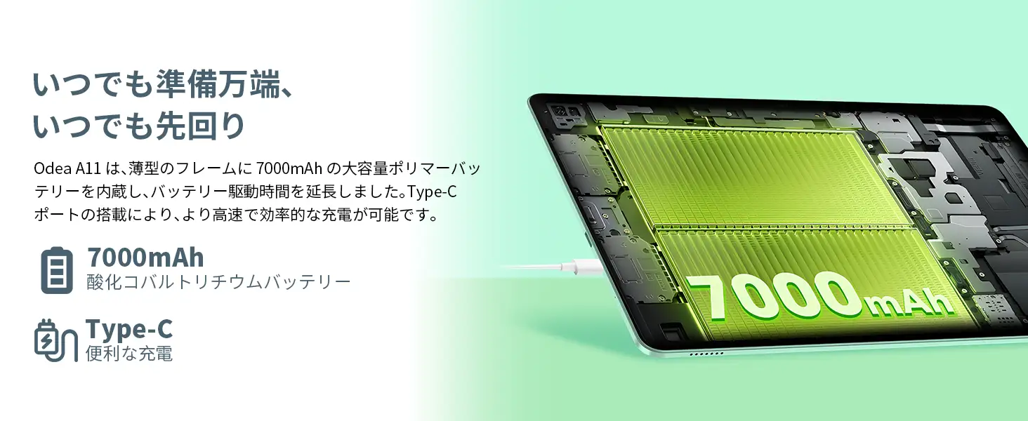 バッテリー容量は7000mAhと11インチクラスのタブレットとしては一般的。