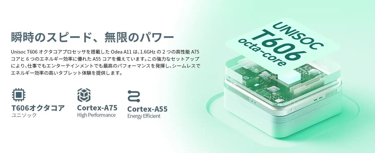 | CPU | UNISOC T606 8コア 1.6 GHz |