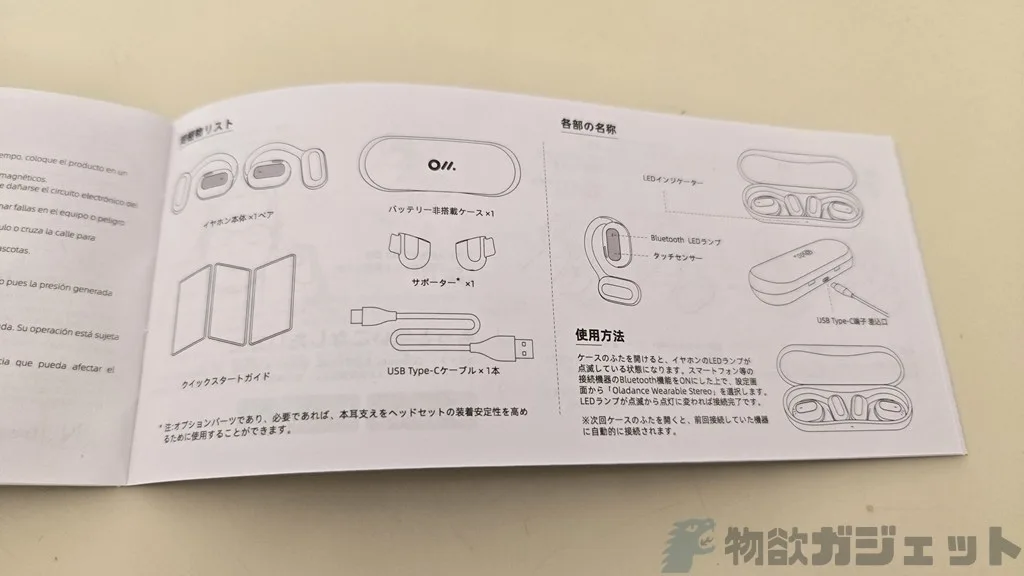 同梱品はマニュアル、USB Type-Cケーブル、イヤホンケース、サポーター、イヤホン本体となっています。