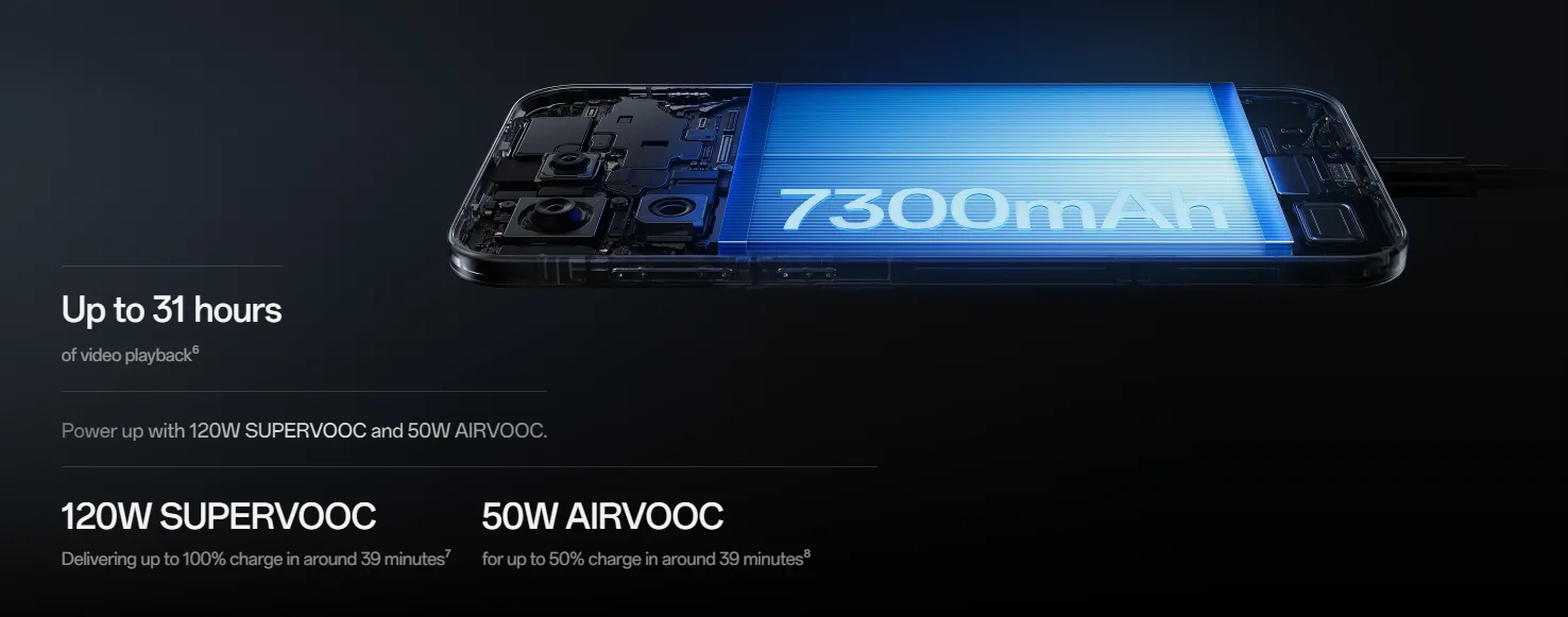 そして急速充電はお得意のSuperVOOCで最大80Wの有線急速充電に対応し、また50W AIRVOOCワイヤレス充電にも対応しています。