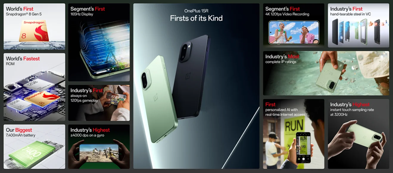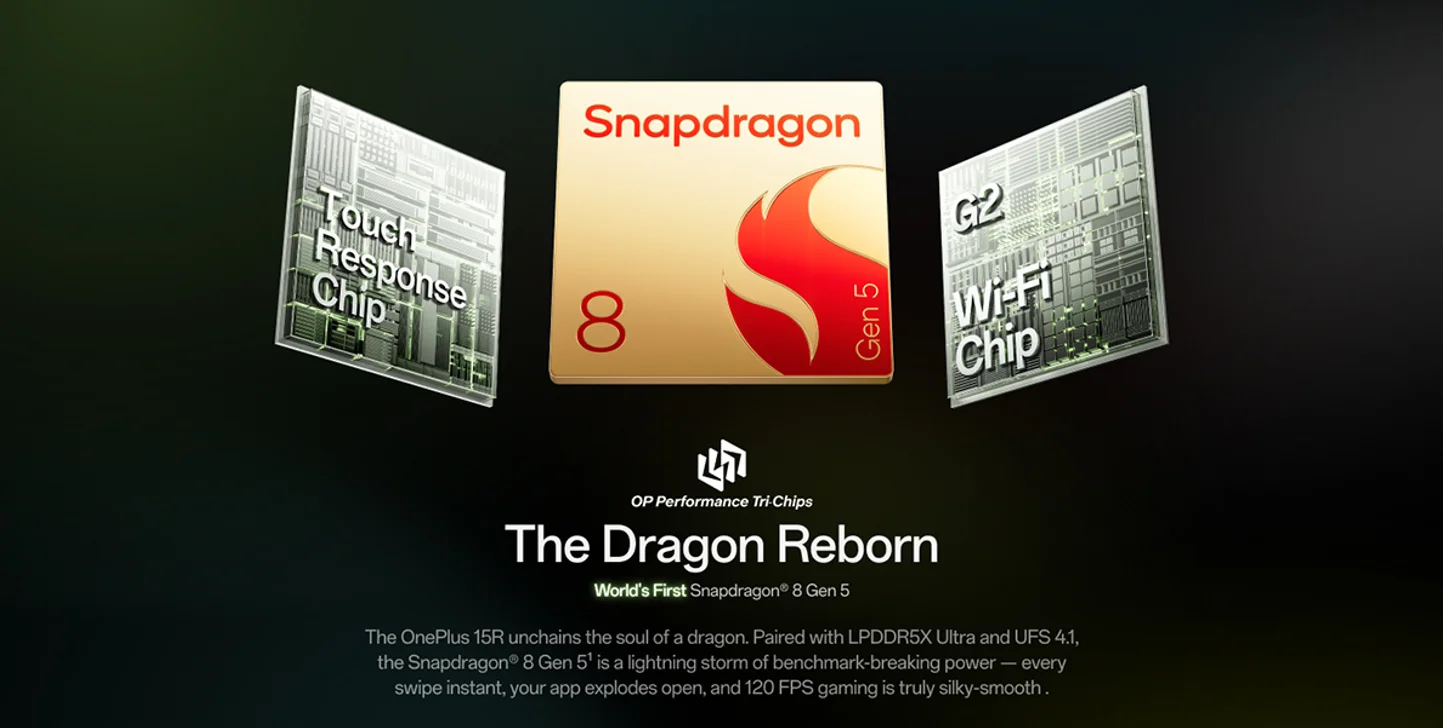 Rがつくシリーズはフラッグシップの廉価版という位置づけですが、SoC(CPU)にOnePlus15と同様にSnapdragon8 Elite Gen5を搭載し、更にOnePlus15から、画面サイズのアップ、バッテリー容量をアップ、5gの軽量化を果たし、価格もセールで529ドルと割安です。