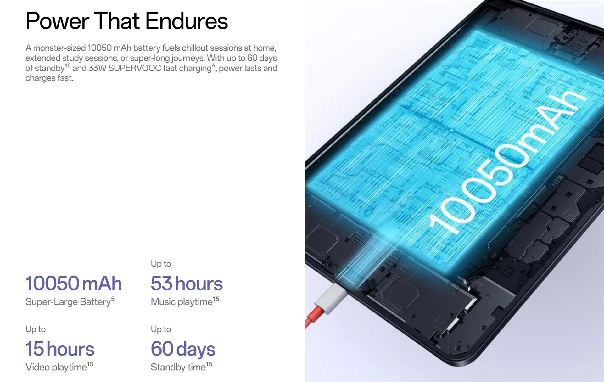 バッテリー容量は、大画面モデルに相応しい10,050mAhを搭載。
