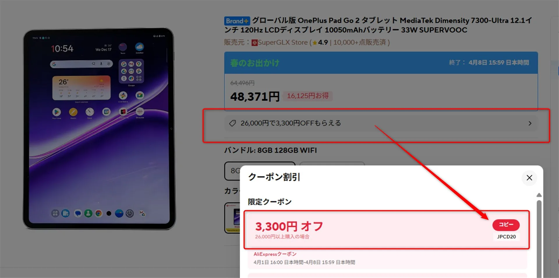 OnePlusから発売されている大画面12.1型タブレット「OnePlus Pad Go 2 」が、AliExpressのセールとクーポンでかなり割安となっています。