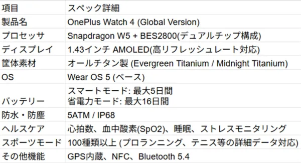 スマートフォンメーカーのOnePlusから、Snapdragon W5プロセッサ搭載でWear OSのスマートウォッチ「OnePlus Watch 4」グローバル版が発売されました。
