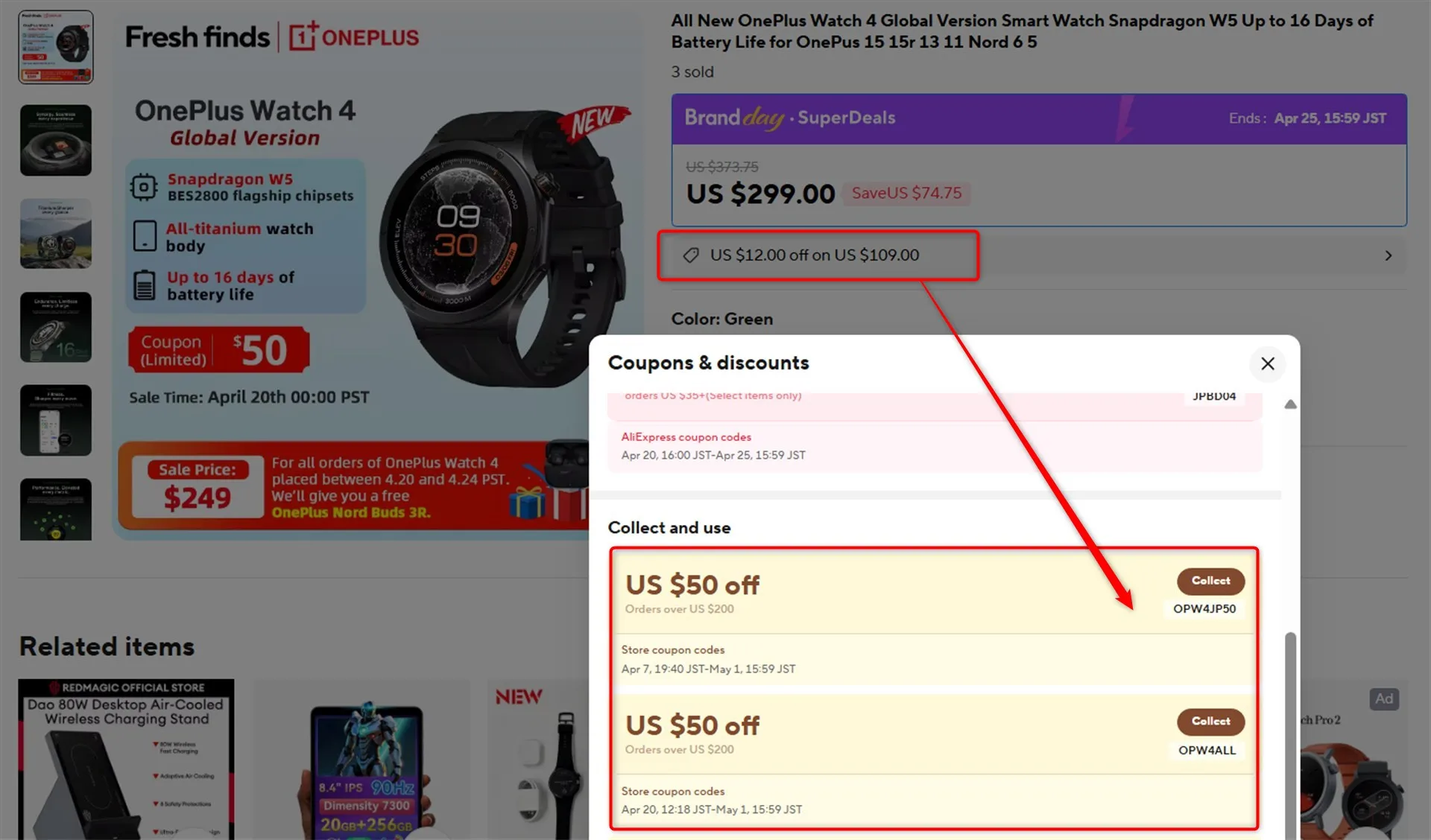 但し、以下クーポンで、50ドルオフ、また12ドルオフクーポンも使える為、トータル62ドルオフで、最終値引き後価格は237ドルと日本円約38,000円です。
