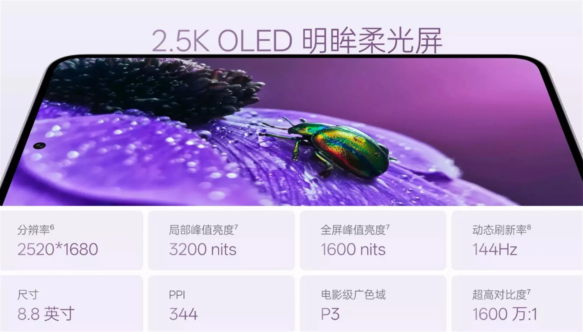 8.8インチで2520×1680という2.5Kの高解像度の有機EL(AMOLED)ディスプレイです。