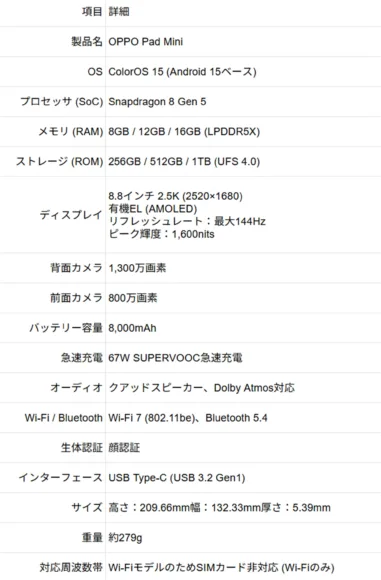 OPPOも遂にアツイ”8.8インチタブレット”市場に「OPPO Pad mini」で参入してきました。