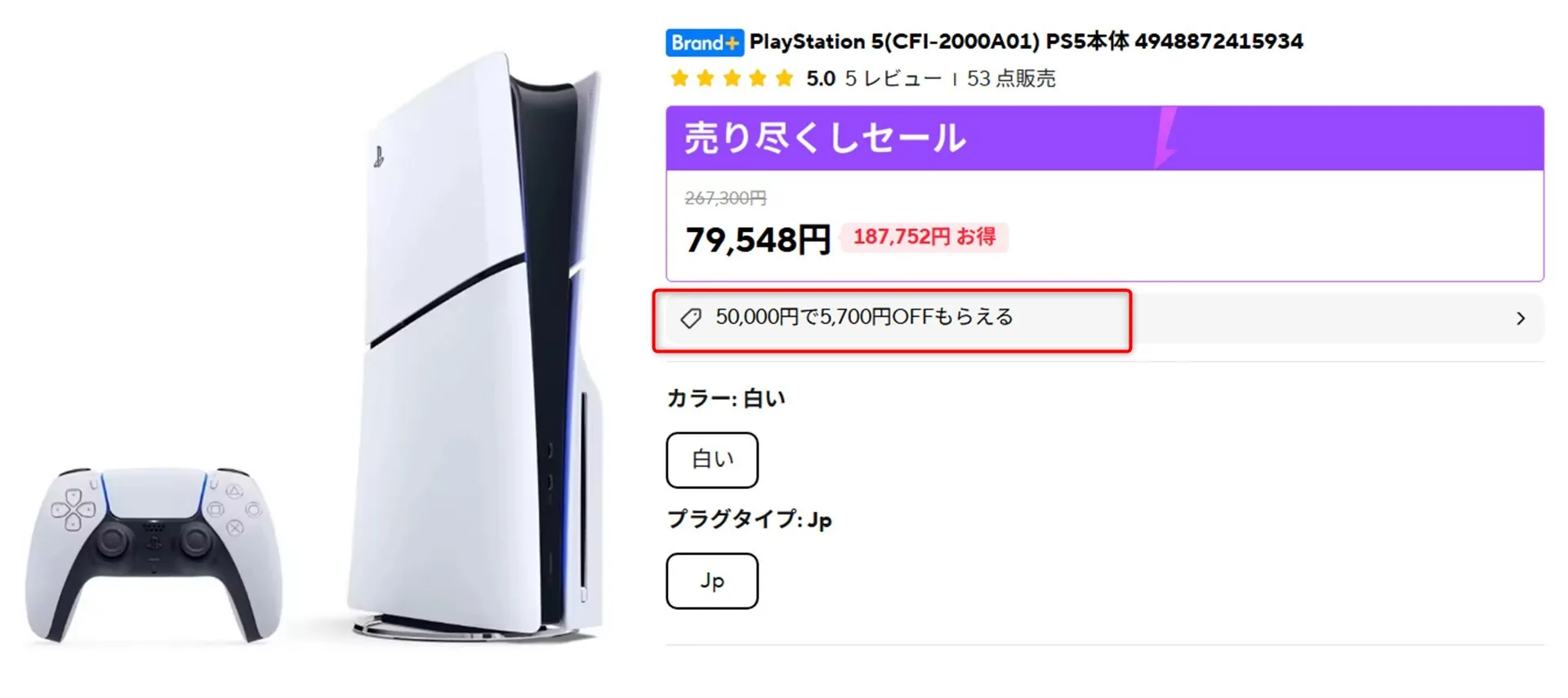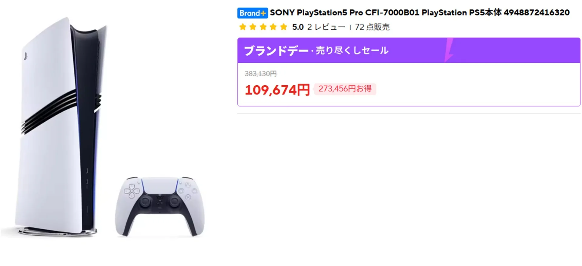 PlayStation5 Pro CFI-7000B01(2TB SSDモデル)は、109,674円で国内価格が概ね119,800円ぐらいであることを考えると1万円安いです。(但しこちらはクーポン無しの価格)