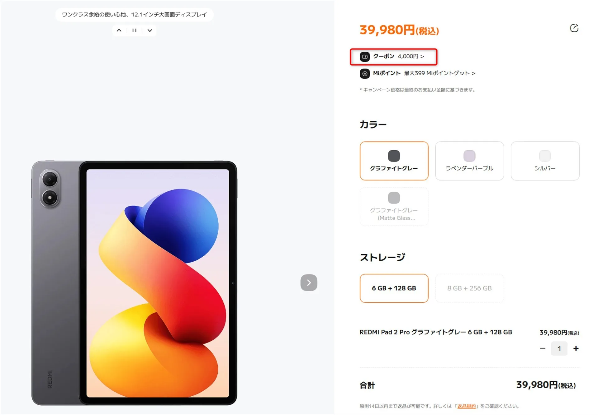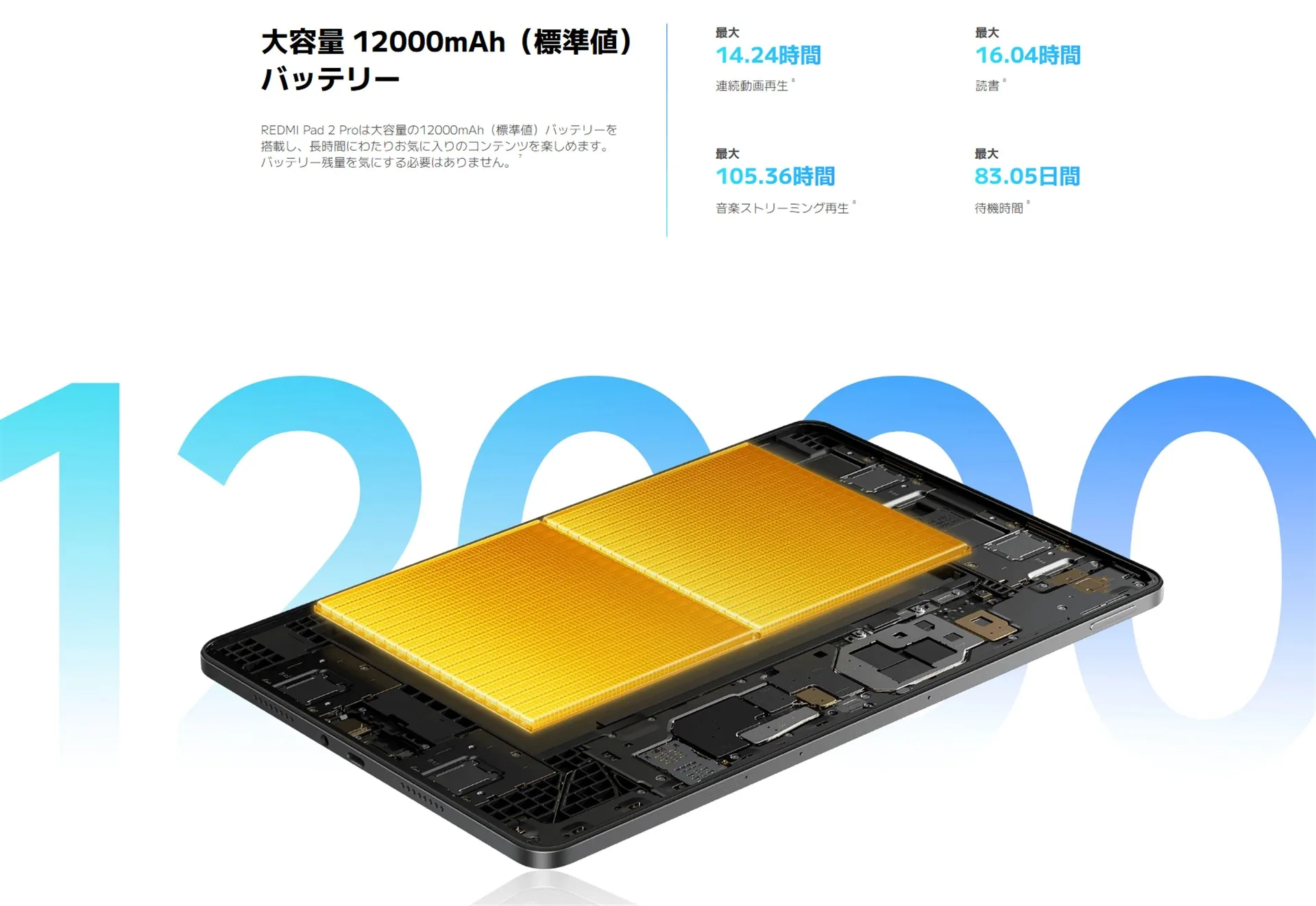 公式サイト : Xiaomi Redmi Pad 2 Pro