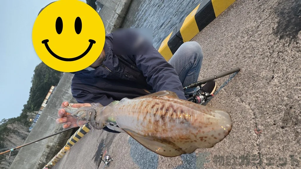 私も”とりあえず”として用意していた、餌巻きエギ(もぐもぐサーチ)にすると即釣れました。