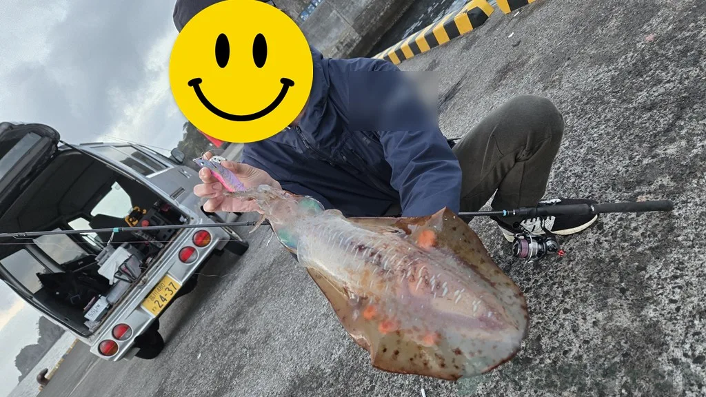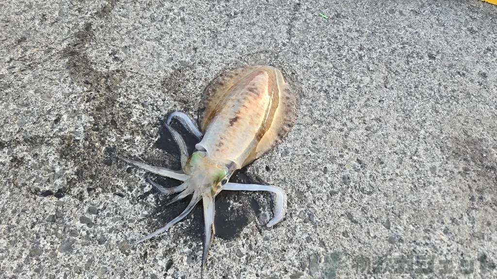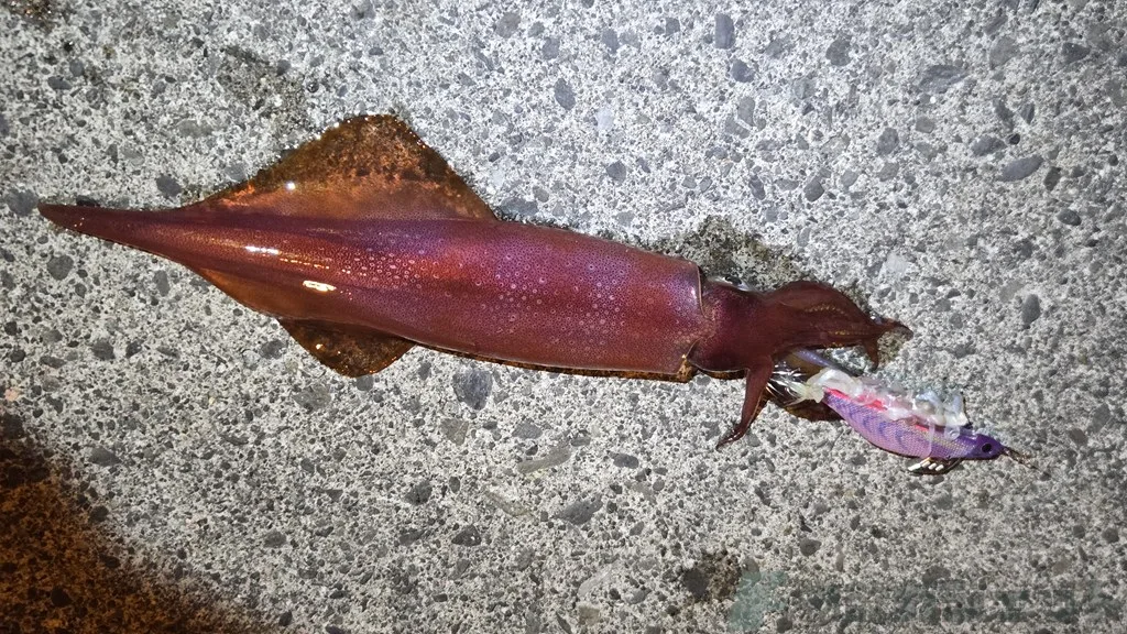 なかなか良いサイズです。ケンサキは私の中では、イカ刺しが最高に美味く、大好きなので、どんどん釣りたい所ですが、息子もケンサキ1杯追加してこの日は終了。