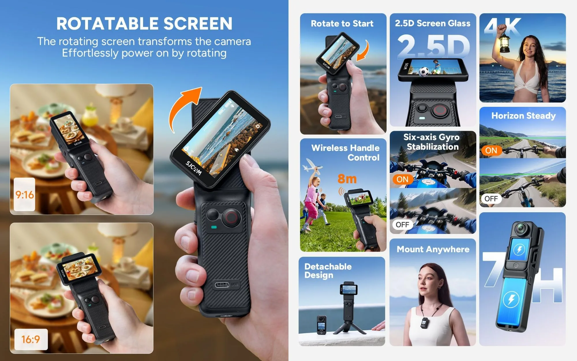 SJCAM C400は、カメラが着脱可能なモジュラー設計と回転式ディスプレイを組み合わせた、使っていて楽しくなるアクションカメラです。