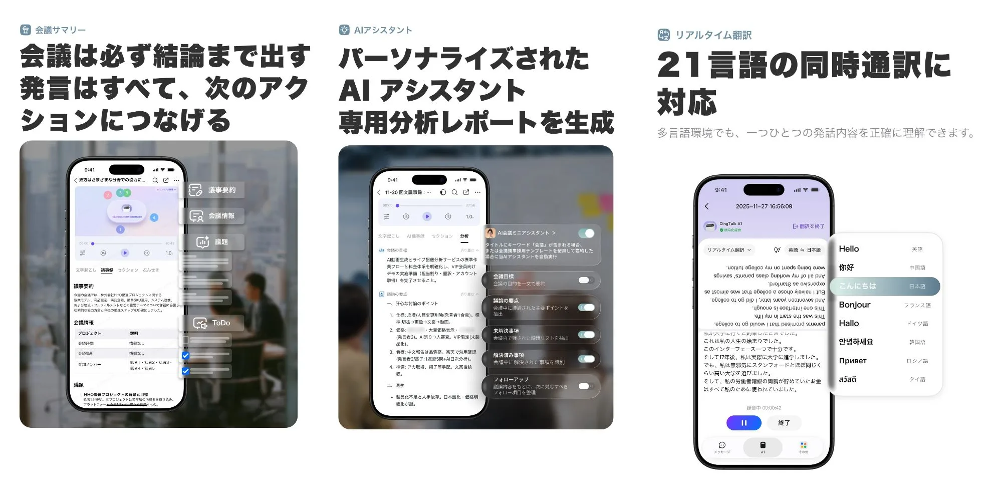 また、同時翻訳機能により英語会議もリアルタイムで日本語化可能。