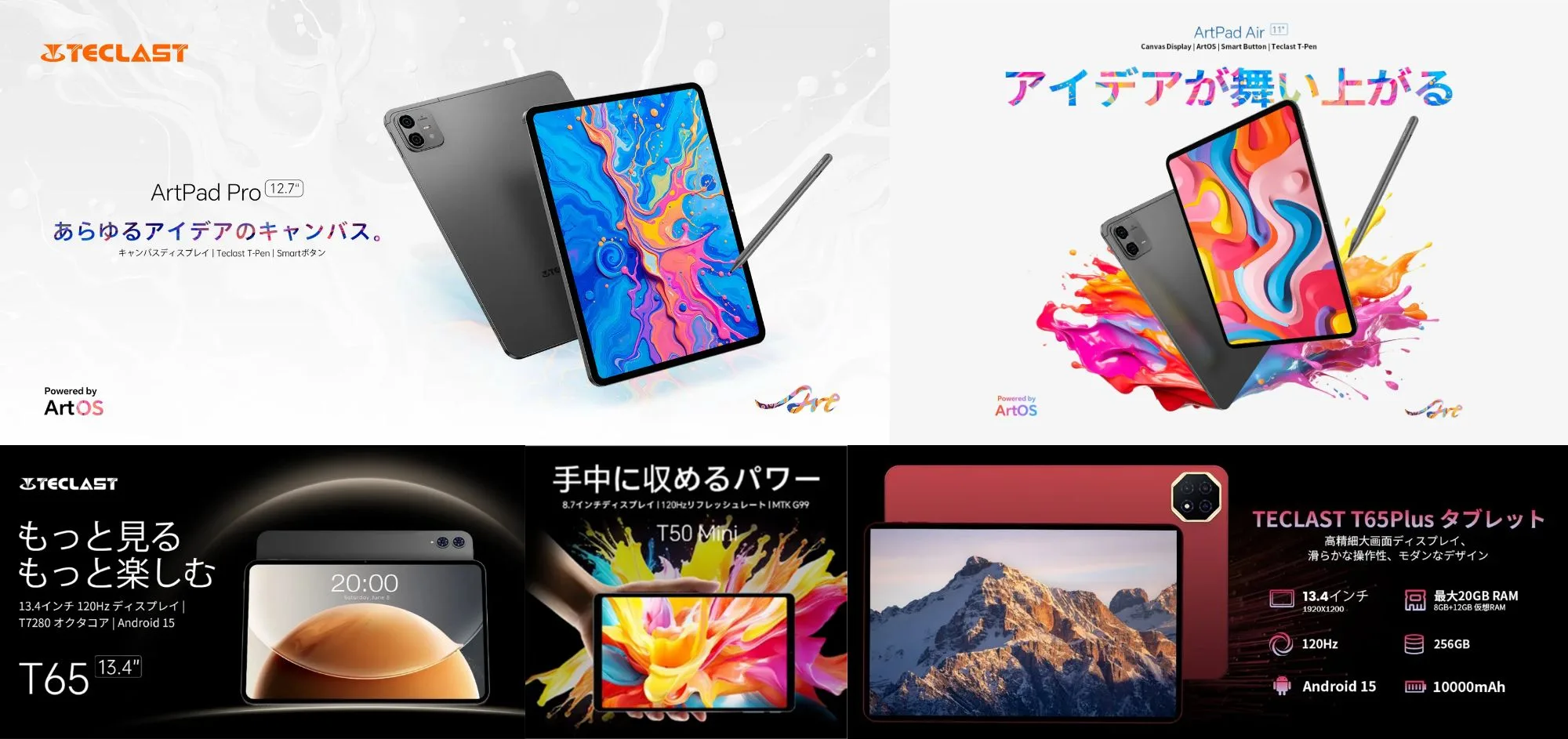 発売直後の13.4インチの特大タブレット TECLAST T65 Plusや、大人気のお絵描きタブレットTeclast ArtPad Air、Teclast ArtPad Pro等、5つのタブレットがセールとなっていますので、まとめてみました。