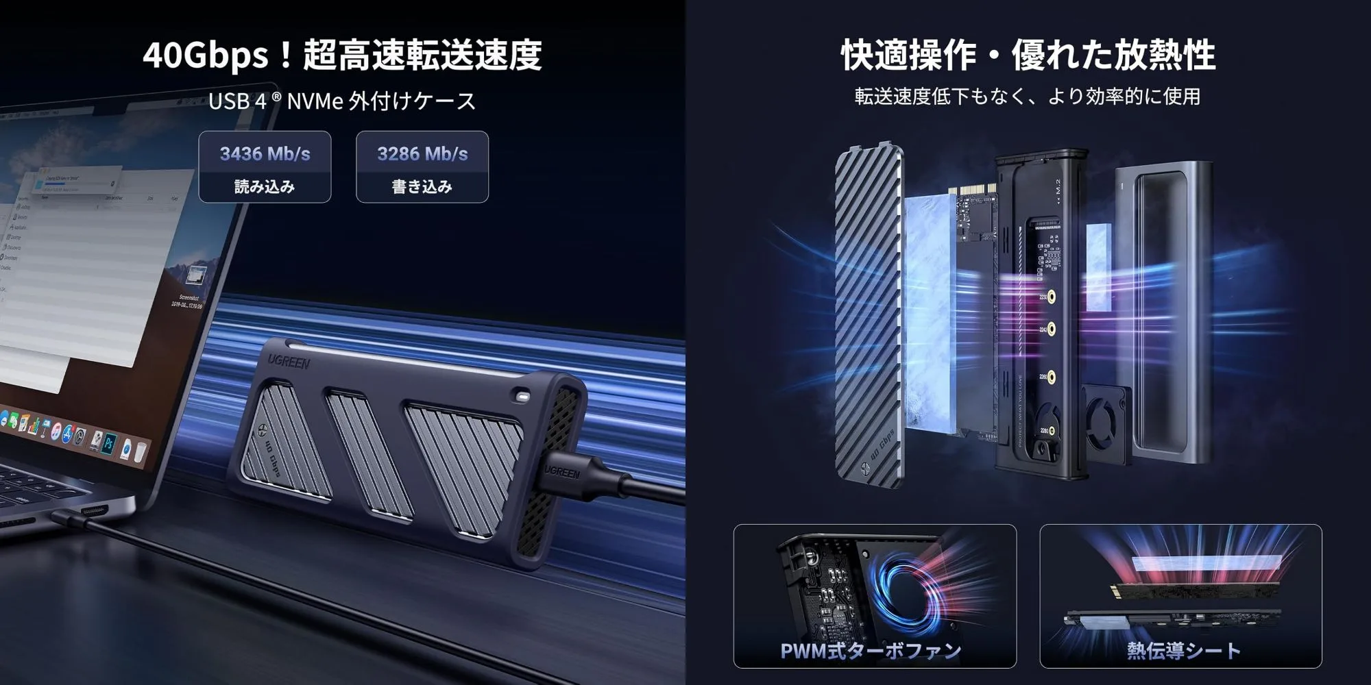 UGREEN M.2 SSD ファン内蔵外付けケース 【USB4 40Gbps】