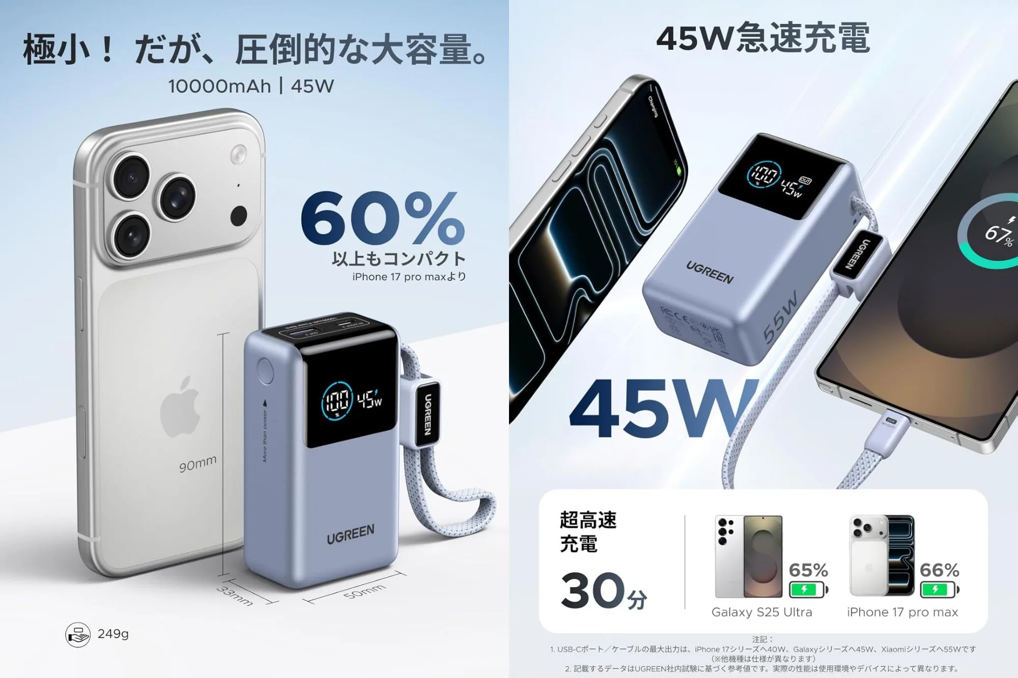 UGREEN 超小型 10000mAh・45W出力 モバイルバッテリー