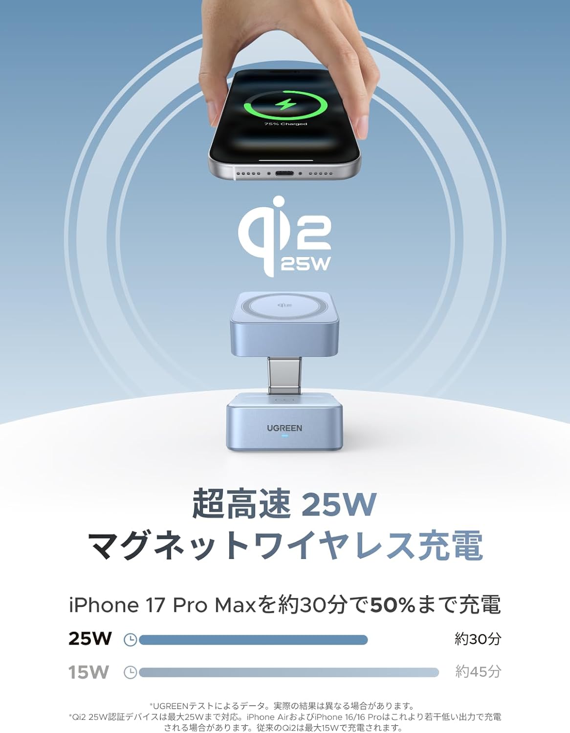 UGREEN MagFlow 25W Qi2 ワイヤレス充電器