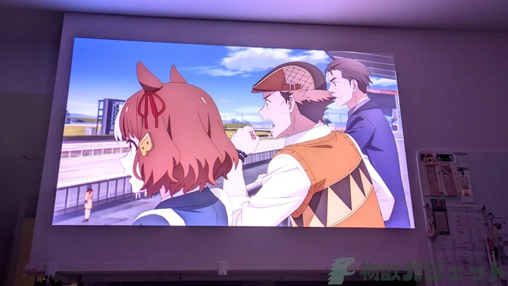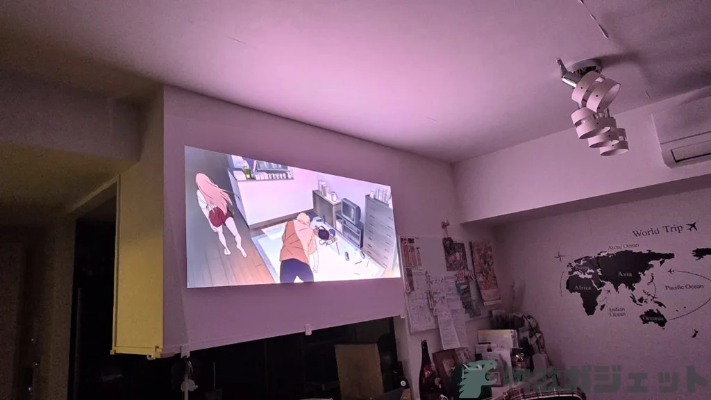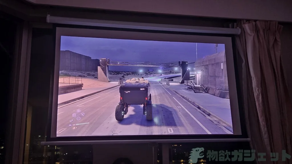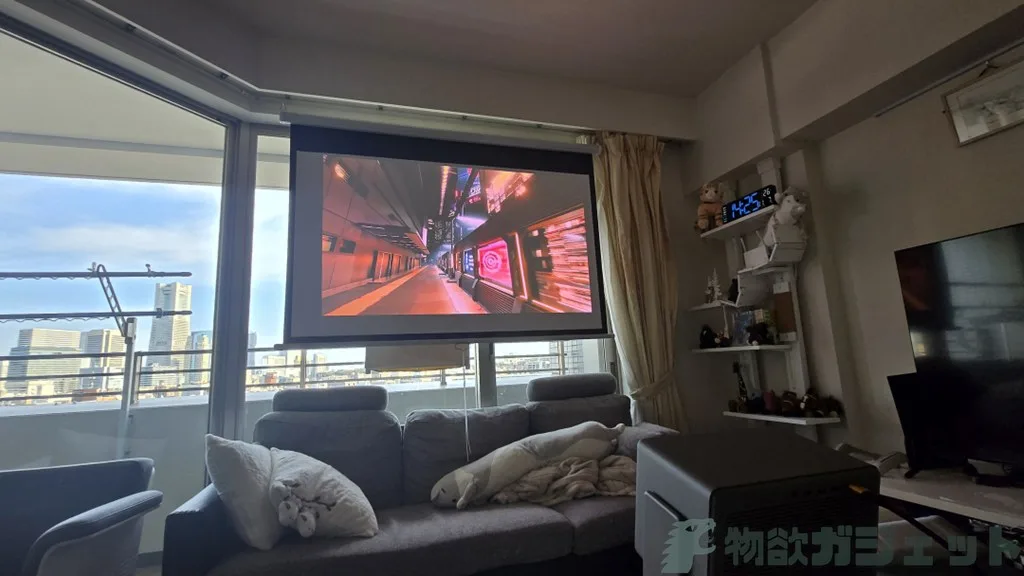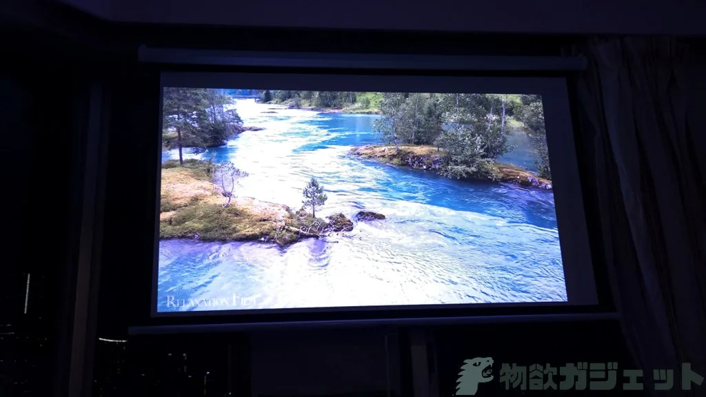 そのオートフォーカスも自動台形補正もとても速く、キビキビと動いてくれますのでストレスが少ない。上下左右に動かしやすいHORIZON 20 Proですが、逆に触ると動いてしまう面もあるので、その都度画角直すわけですが、それでもこうして自動台形補正+オートフォーカスしてくれるので、少し動いたぐらいでは調整不要なぐらいです。