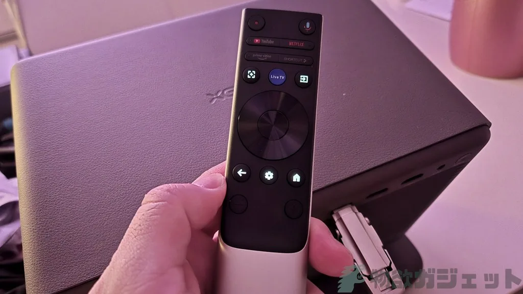 リモコンは、YouTube、ネットフリックス等のショートカットと十字キーと使いやすい配置。また真っ暗でも操作し易いバックライトを搭載しています。