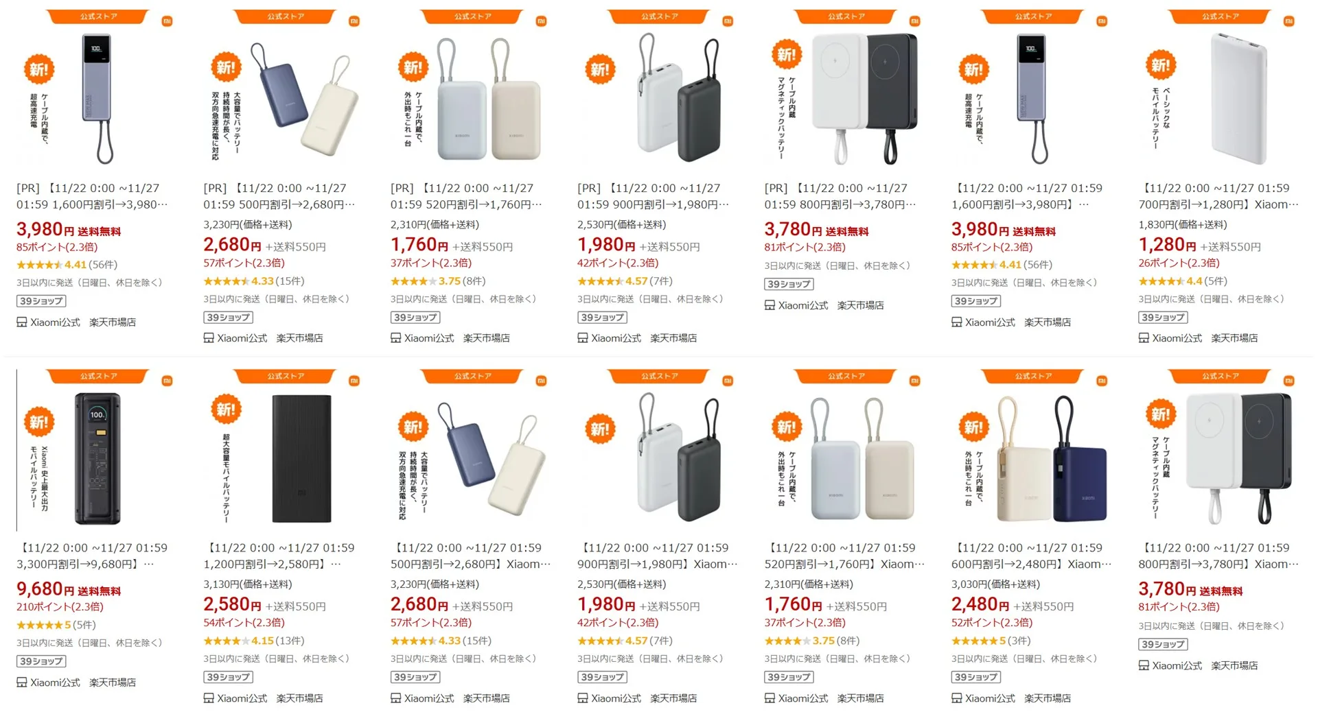なおXiaomiでは、その他モバイルバッテリーも軒並みセールとなっています。