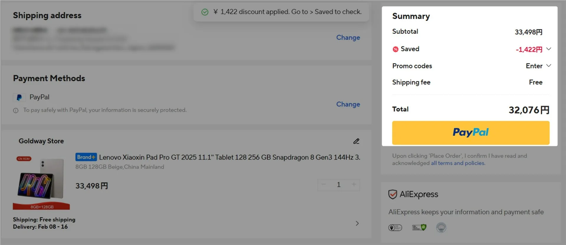 Lenovo Xiaoxin Pad Pro GT 8GB+128GBの価格は、AliExpressセールで33,498円。