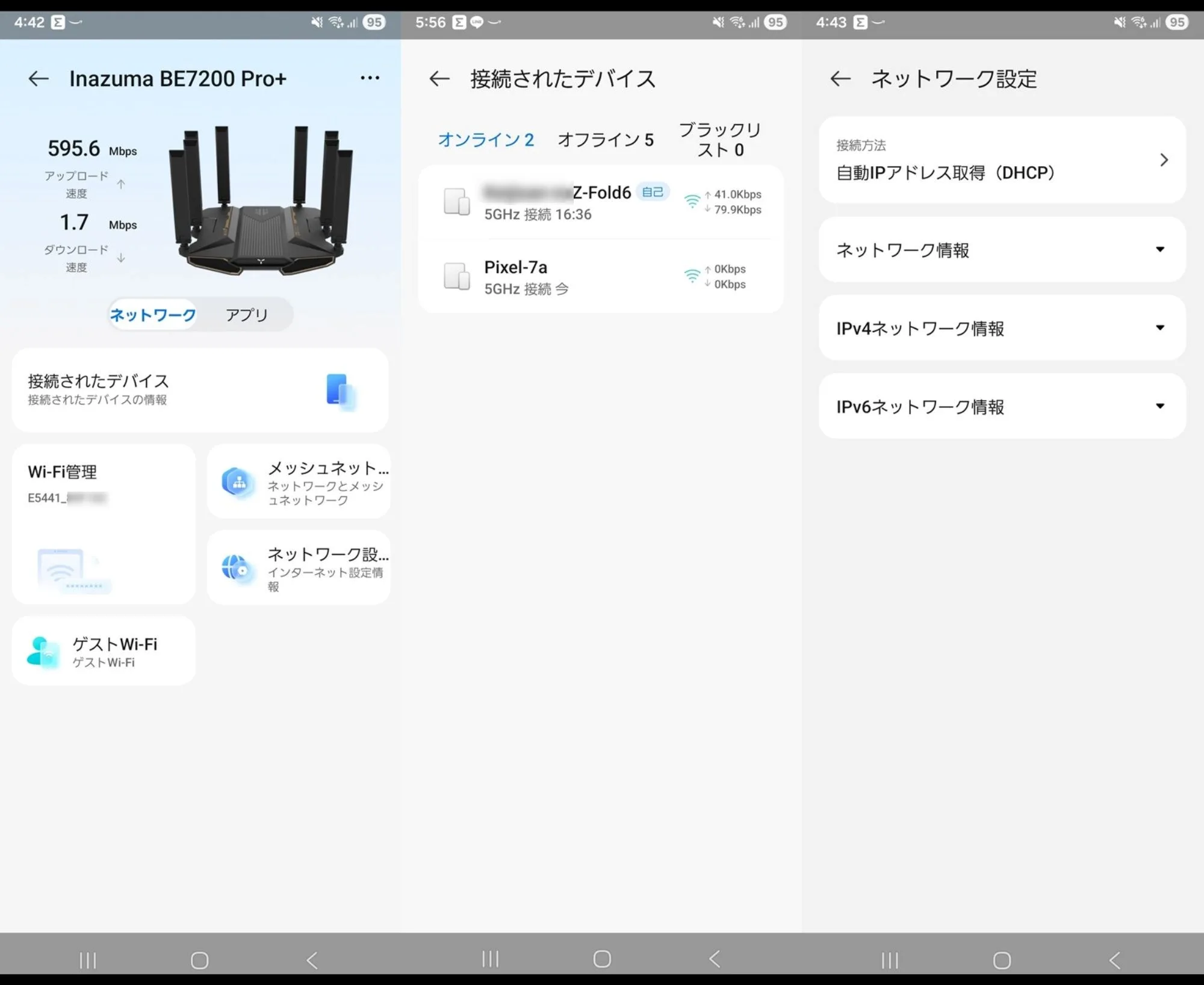 アプリ側では設定の変更や、現在接続されているデバイスのリスト、メッシュWiFiの設定等が可能。