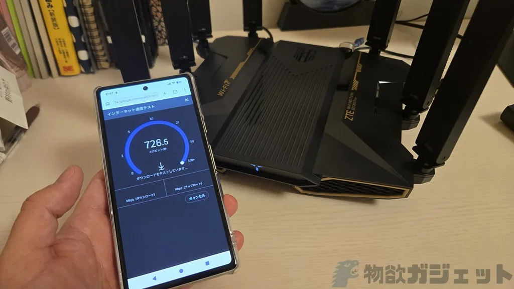 その回線をこのZTE Inazuma BE7200 Pro+に切り換えたところ、常時700-800Mbpsと超高速でした。