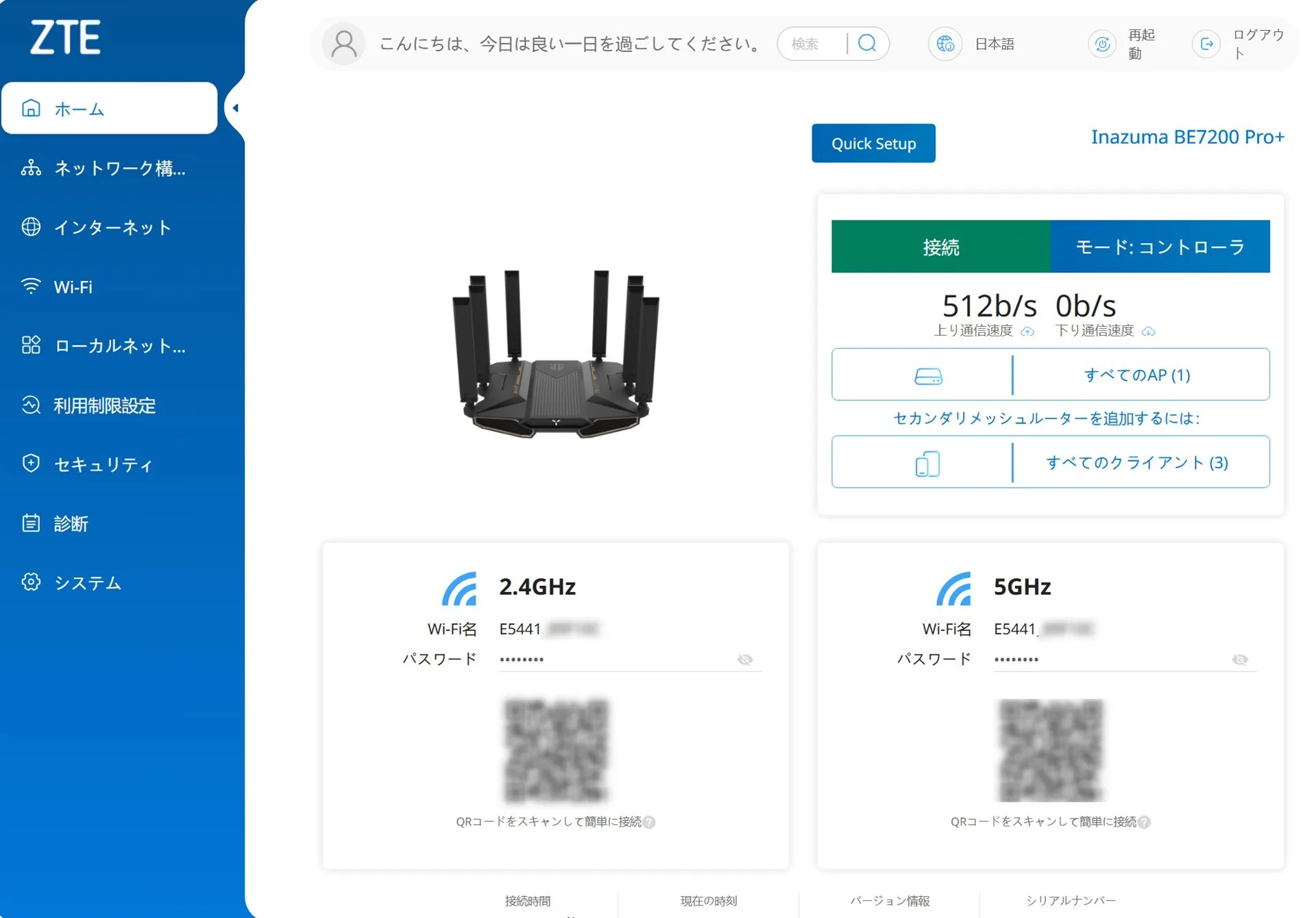 初心者でも簡単にセットアップできます。ZTE SmartLifeをインストールすればあとは画面の指示に従っていけばOK。大抵はルーターとして設定すると思いますし、よほど特殊な事情が無ければ、自動IPアドレス取得のDHCPに設定していけば、完了します。