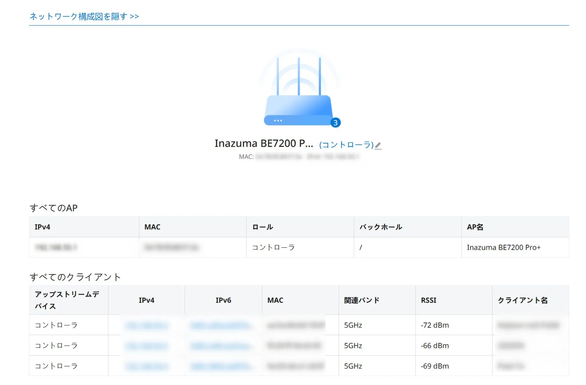 現在接続されているデバイスも、バンドや強度(RSSI)等が分かるので、より詳細に状況を把握できます。