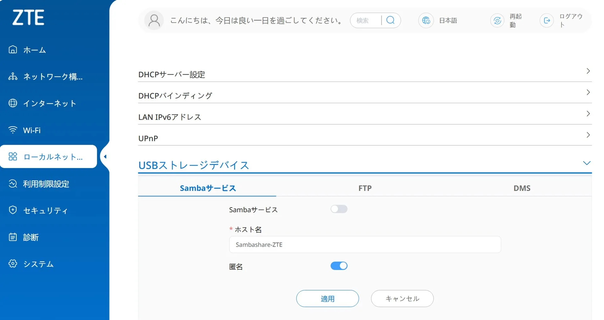またUSBストレージを簡易NAS化する設定もこちらでできます。